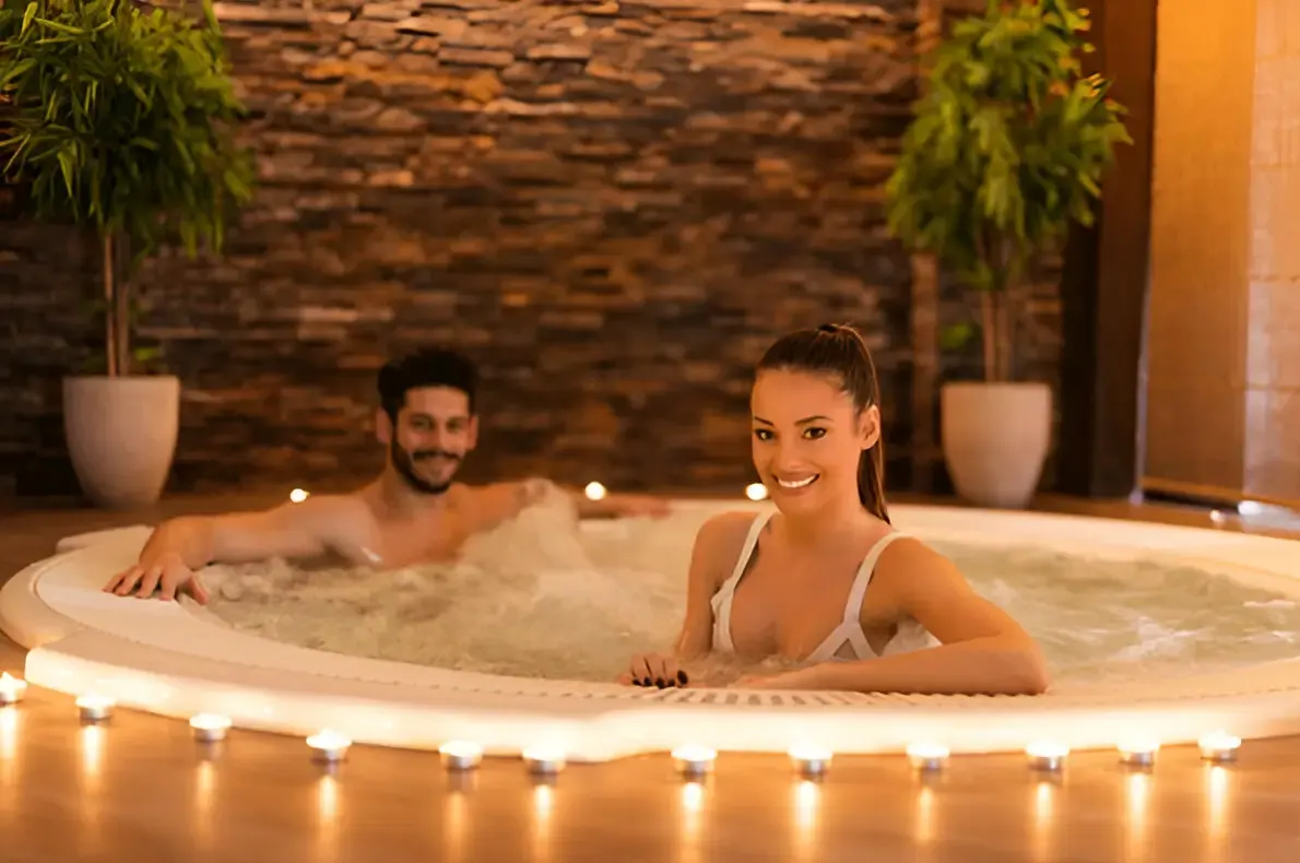 Enjoy a relaxing Jacuzzi session in an elegant, serene setting made exclusively for couples.